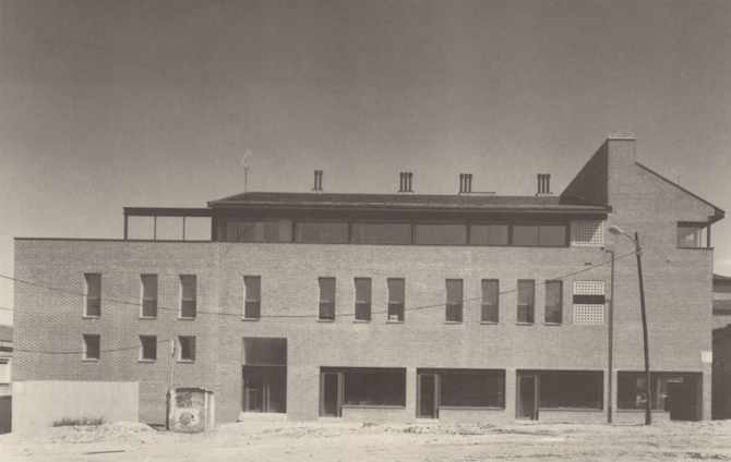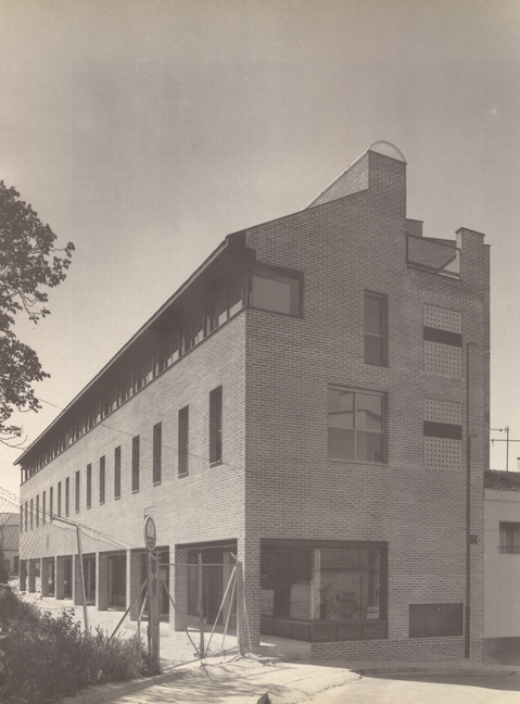 Los bloques acentúan su horizontalidad mediante los soportales delante de los locales comerciales de la planta baja, y el hueco corrido bajo la cornisa acompañado del lucernario en cubierta. De este modo se potencia la idea de plaza a la vez que la variación de huecos en altura acorta la presencia de los paramentos verticales. Muros de ladrillo visto o enfoscado y carpinterías dibujadas sobre ellos marcan el carácter y ritmo de las fachadas, que sin embargo son punteadas por detalles que hablan de una voluntad de subrayar su contemporaneidad: prefabricados de tendederos, vidrios traslúcidos enrasados, ventanas de esquina o lucernario curvo, datan explícitamente el edificio.
