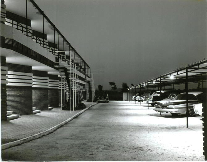Similarly, the Americanism that emerged from the economic and social development of the 1960s manifested itself in a multitude of sectors and facets. The opening up of the economy was followed by an accelerated process of industrialisation and the importation of car culture, skyscrapers and large infrastructures. Thus, the hordes of SEAT 600s leaving the Barcelona factory found themselves in architectures designed to suit them, as in the Los Enlaces service station or in the Motel El Hidalgo, a work in which the car and life agreed on new ways of relating to each other. For their part, energy and communication infrastructures found in architects such as Joaquín Vaquero Palacios or Julio Cano Lasso the hand to formalise their symbolism in the imaginary of the time, in the same way that cities found in architects such as Milagros Rey the hand to incorporate the tower into their repertoire of buildings.
