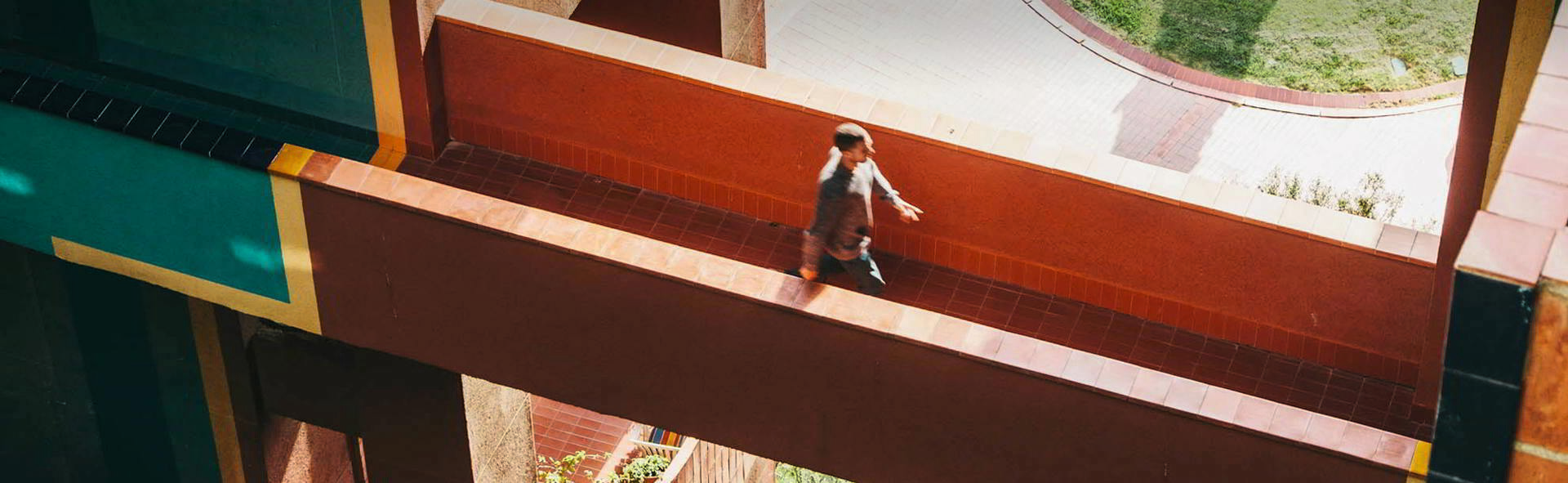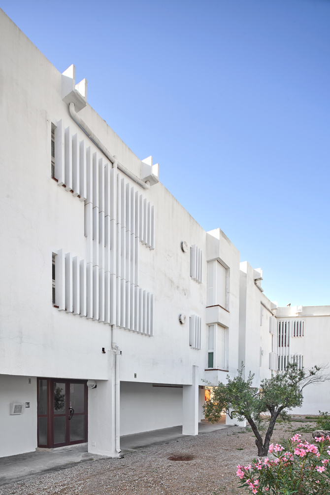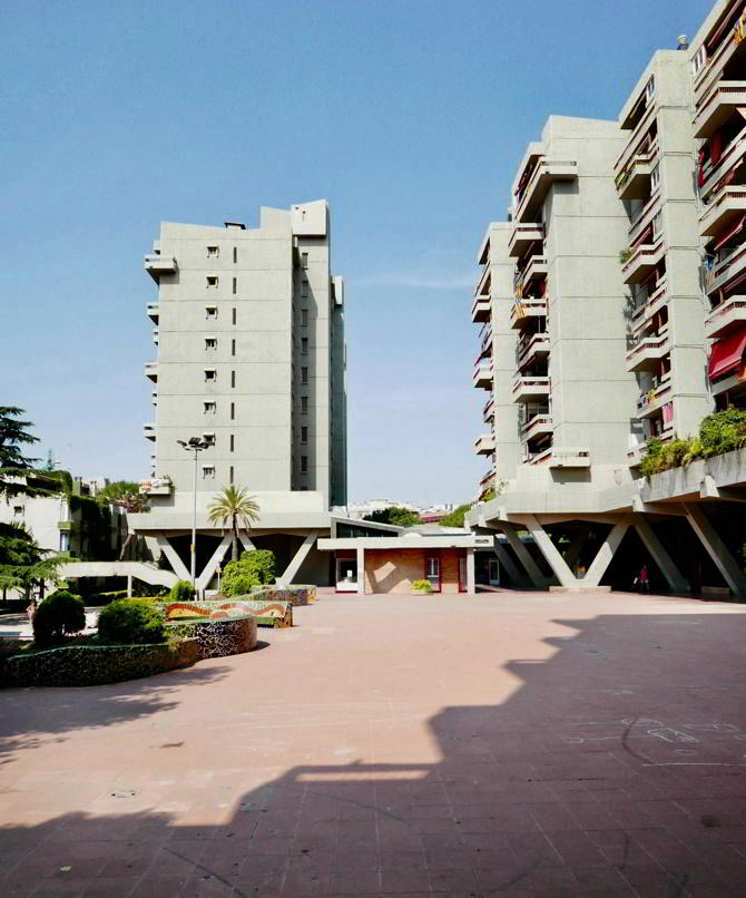 In Badalona, Can Mercader offers a different response to these same debates. Here, public space and buildings blend together in an intricate system of squares, walkways and platforms at different levels between which vegetation is multiplied and common-use facilities are inserted. At first glance, the rotundity of its concrete structures and enclosures may lead us to associate the complex with the monotony and coldness that we often associate with modern architecture. However, if we look a little closer we discover that the grey of these elements is nothing more than the background to a rich palette of colours: the oranges of the awnings, the blues and reds of the woodwork, the greens of the trees and all the intermediate range of brightness of the ceramic finishes. All of them signs of a spirit that had nothing to do with discipline or control, but with optimism and the imagination of new ways of thinking about life together. The last building on this train journey is precisely a radical example of this very spirit. In Sant Just Desvern, Walden 7 is a monument to community life based on attention to the individual. As such, its unit of measurement and organisation is no longer the block or the tower, but the individual cell, grouped around patios, terraces and pools for shared enjoyment. The resulting organism, as strange as it is suggestive, lives on today to point to the transformative capacities of architecture when it intersects with the culture of its time through the initiative of developers and institutions committed to more than economic return.