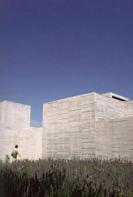 El programa del Centro de Salud se desarrolla de manera extensiva en una sola planta baja. Las distintas dependencias del programa se ordenan generando una parrilla ortogonal irregular poco densa, donde trece patios se distribuyen al tresbolillo entre las estancias públicas y privadas siguiendo tres (no) corredores paralelos. En oposición a este sistema ligero, atomizado por los patios, la fachada rotunda y pesada se concibe como una masa continua y ciega de hormigón visto. Idea de pesadez que se refuerza con una textura rugosa formada por encofrado de tablas de madera horizontales.
