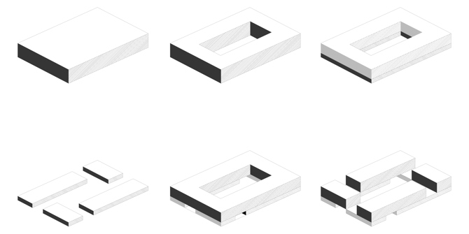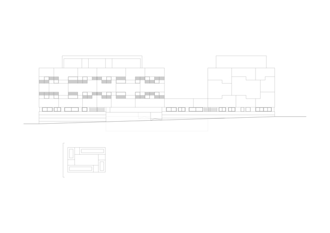 Estos edificios definen un movimiento horizontal de unos sobre otros, horadados ambos por líneas de ventanas, con diversos sistemas de cerramiento. Hoy en día, el factor económico obliga a la racionalización y normalización en la vivienda de precio ajustado. Pero, por otra parte, el aumento de complejidad de nuestros requisitos exige flexibilidad. El futuro tendrá que tener en cuenta ambos aspectos.