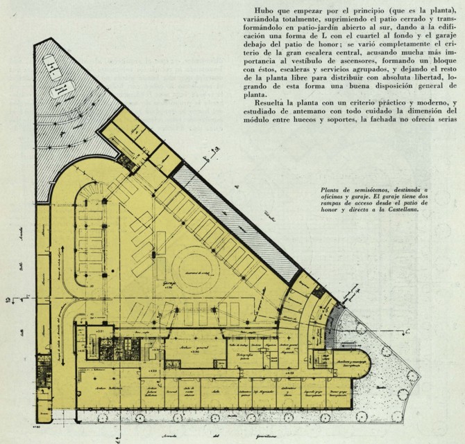 Fue diseñado por Gutiérrez Solo para albergar las oficinas centrales del Alto Estado Mayor, un pequeño cuartel y garaje, sobre una parcela triangular en esquina; una edificación aislada con jardín que debía comprender las plantas: sótano, semisótano, baja, tres pisos.