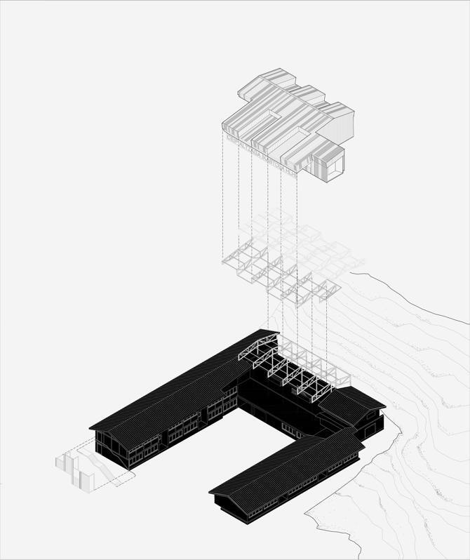 La intervención amplía en tres unidades el programa de aulas y adapta el programa de usos comunes en consonancia. El proyecto sustituye el volumen del gimnasio superpuesto al edificio por el programa docente ampliado. Se reubica el núcleo de escaleras interior y se incorporan un ascensor y salidas de evacuación en los testeros para dar cumplimiento a la normativa vigente.