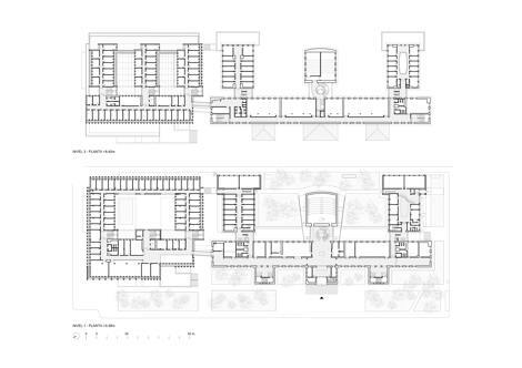 El objetivo principal de la intervención era integrar dos cuestiones: la continuidad con el edificio histórico, y la máxima eficiencia energética para obtener un consumo de energía casi nulo (ECCN). En el edificio existente, la reforma destaca los valores patrimoniales, mejora su eficiencia energética y activa los patios exteriores. El proyecto elimina las modificaciones interiores para recuperar la disposición original de las plantas, refuerza la estructura y la cimentación, mejora las prestaciones de la envolvente, restaura las fachadas, y completa la redistribución de las plantas. Además, se han realizado operaciones puntuales que mejoran la funcionalidad, la relación y la accesibilidad entre las diferentes partes. La operación de mayor calado se produce en el vestíbulo principal. La demolición de un volumen interior adosado al Aula Magna genera un vacío a triple altura, que incluye una nueva escultura helicoidal. Esta actuación posibilita la apertura del vestíbulo hacia los dos patios posteriores. El corredor longitudinal de circulación recupera su sección original. Un banco corrido integrado, unido a la anchura del corredor, generan espacios de relación entre las aulas.