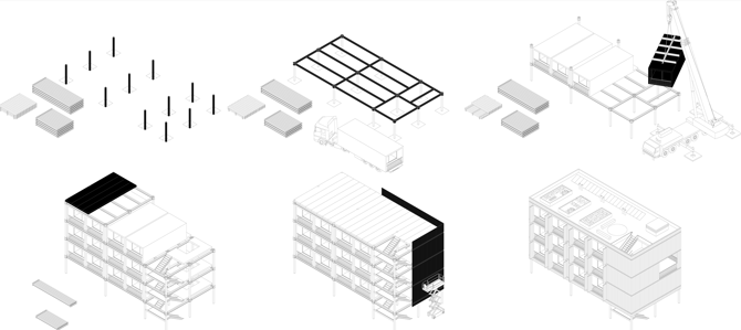 Desmontabilidad: la independencia entre la estructura portante y los módulos habitables permite un montaje ágil, reutilización de componentes y una construcción seca, rápida y segura.