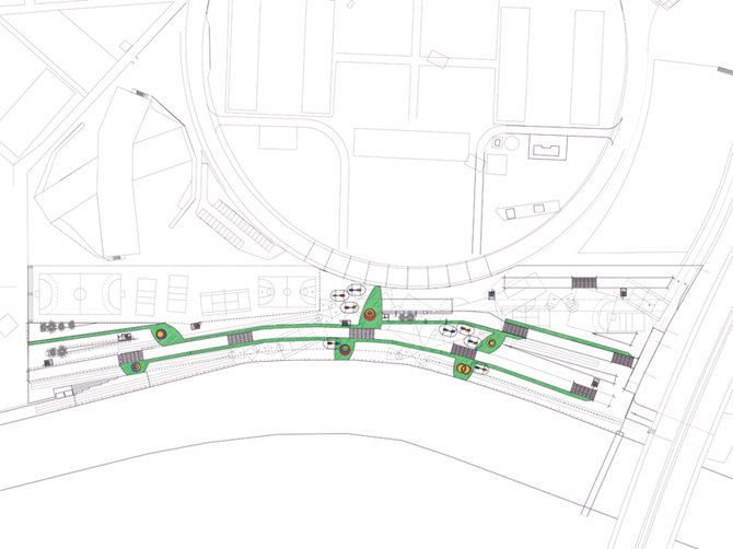 El desarrollo del proyecto en esta dirección hizo cada vez más explícito el hecho de que esta superficie podría ser un lugar especial. De modo que nosotros pensamos que este espacio que surgía podría ser entendido como un espacio urbano en el borde de la ciudad, un lugar que se establecería de un modo interesantísimo como espacio verde artificial a la vez que urbano, y como espacio urbano que podría ser el acceso al espacio verde natural del futuro Parque del Oeste. Esta mezcla de lo urbano y lo natural era muy interesante.