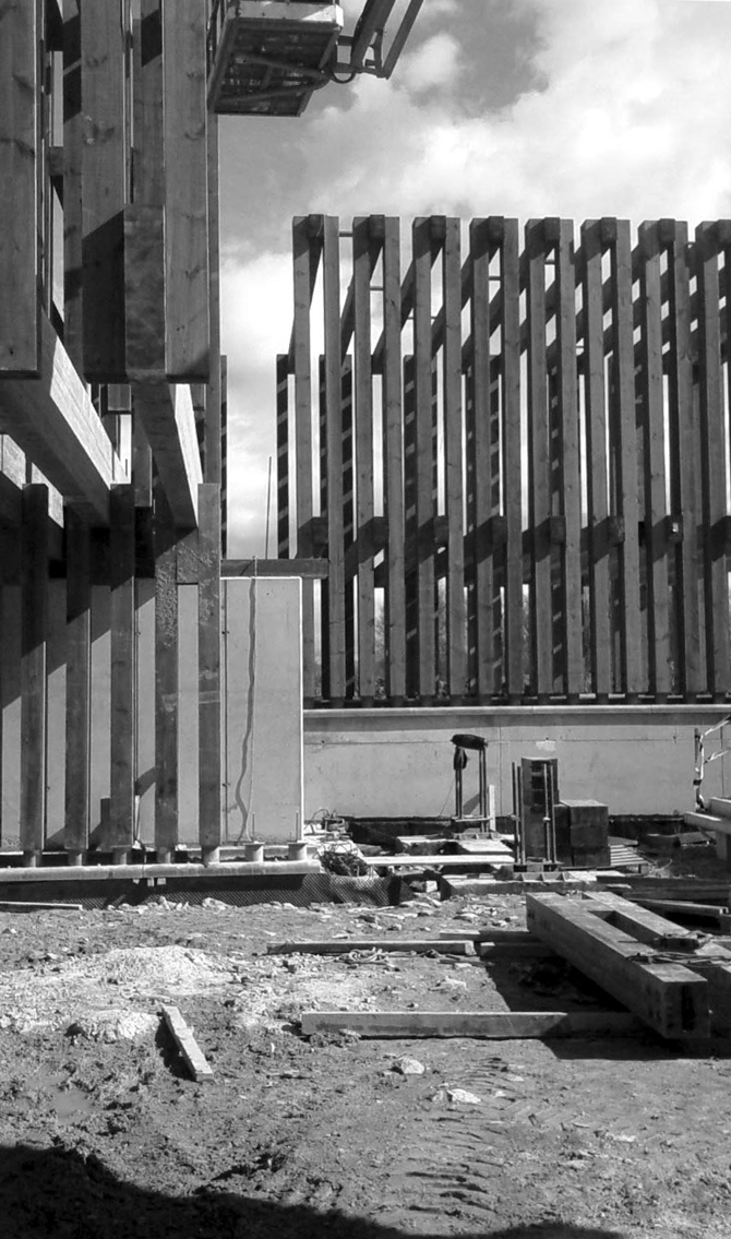 - La voluntad de no enmascarar la estructura durante el proceso constructivo: no queríamos hacer un “edificio con aspecto de madera” sino un verdadero edificio de madera. Desde la estructura hasta el edificio terminado, apenas han aparecido nuevas capas y en ningún momento ocultan la madera.