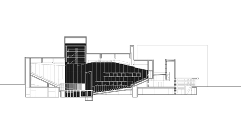 El conjunto del auditorio de León se organiza en dos construcciones, dando respuesta a las condiciones del entorno. El volumen principal acoge la sala, y un segundo cuerpo alberga las salas de exposiciones. La sala, con un aforo variable entre 600 y 1200 espectadores, se configura como una sala bifocal. Este espacio, de acústica variable, permite acoger actividades diversas: conciertos, congresos, óperas, teatro, danza, etc.