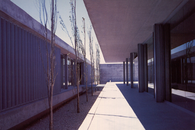 Aislado pues del resto del campus, y rodeado por una vía de intenso tráfico y grandes playas de aparcamiento, el Aulario deberá garantizarse por sí mismo lo que al resto de edificios les viene dado por su situación en la ordenación general del campus: zona verde, espacio exterior, aire, luz y un ambiente propicio para su uso.