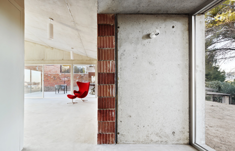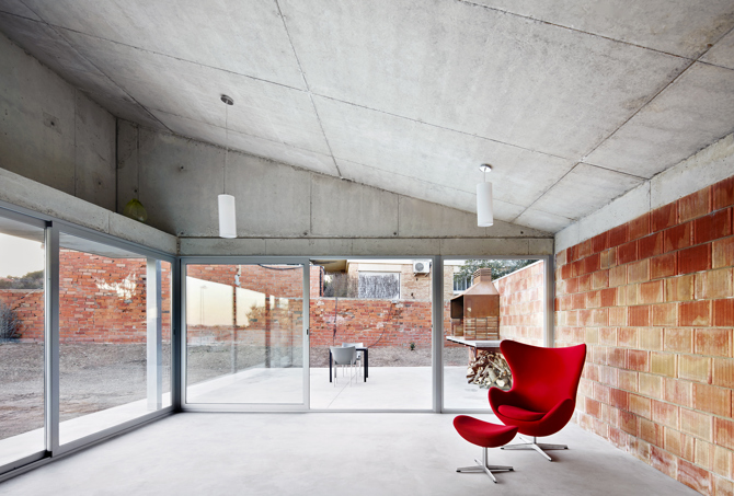 Un presupuesto económico muy limitado, unido a la marcada presencia de los muros cerámicos linderos de las parcelas vecinas, nos llevó a buscar una solución constructiva que reuniera estructura y acabado.