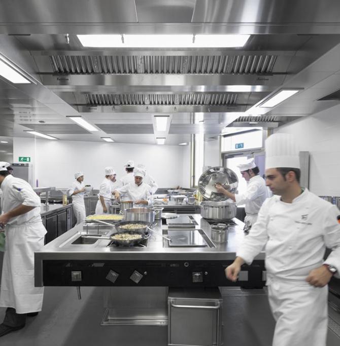 Desde un punto de vista funcional, este esquema ha permitido organizar el programa (15.000 m2) de forma sintetizada en tres grupos: la zona académica, la zona práctica y el área de investigación. La agrupación vertical de todos los espacios relacionados con la zona de práctica gastronómica permite que la interconexión entre todos ellos, tanto para las personas como para la comida, sea directa.