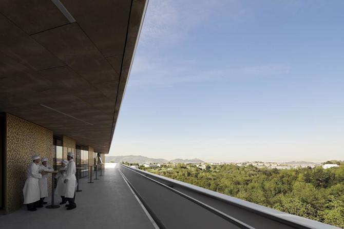 Desde un punto de vista conceptual, la generación de volumen se basa en el trabajo de escala entre la imagen iconográfica (platos amontonados) y el edificio mismo, como lo hace el artista Robert Therrien. La definición volumétrica del edificio sigue esta estrategia, en la que los platos de Therrien servirán como soporte cotidiano a unos espacios dedicados al desarrollo tecnológico y a la innovación en la gastronomía. Así sugerimos la metáfora que une gastronomía y arquitectura; el plato que vuelve a ser el soporte de la gastronomía y las estructuras arquitectónicas de la planta, que vuelven a ser el soporte de la actividad.