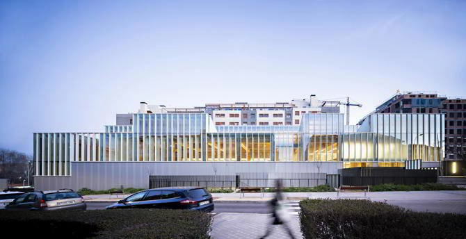 Así filtrada, la luz natural genera una atmósfera de luz indirecta, cálida y vibrante -sin sombras- hacia el interior. Al anochecer, la biblioteca se convierte en una lámpara del espacio público exterior, cumpliendo con una de las exigencias de la ciudadanía.