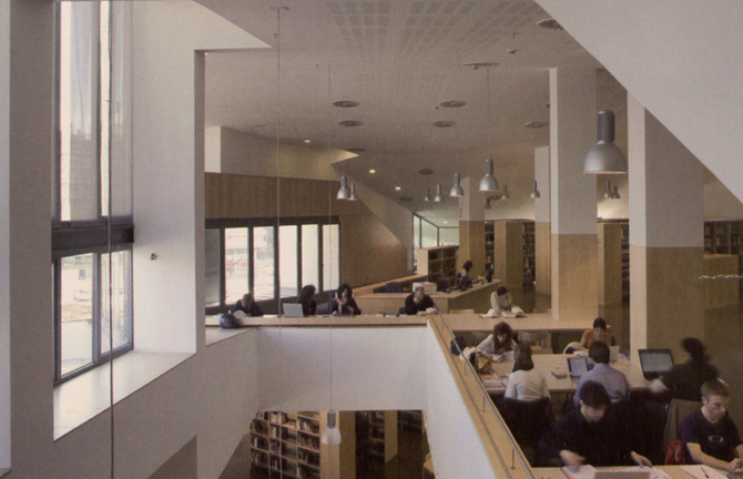Se podría decir que las montañas (Collserola) llegan hasta Lesseps y a partir de aquí la ciudad tiene otra consistencia, más ligada al trazado de las calles que no a la topografía o a la pendiente. Expresar esta condición de límite montaña-ciudad de la Plaza Lesseps nos ha llevado a configurar volumétricamente la biblioteca, casi como un edificio que –llegando de Collserola– se sitúa sobre la ciudad con los atributos de las montañas.