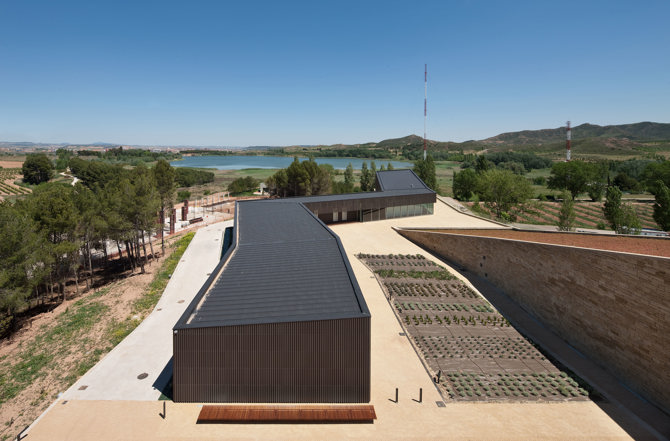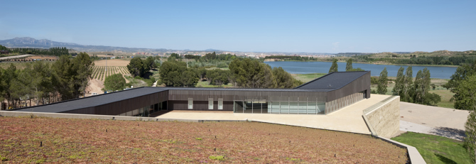 La bodega institucional La Grajera se encuentra a pocos kilómetros de la capital de La Rioja. El proyecto busca un equilibrio entre su carácter representativo y su vocación de integrarse en el paisaje, evitando tanto el exhibicionismo como el mimetismo excesivo.