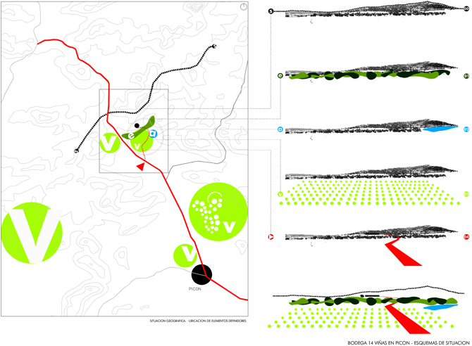La bodega se encuentra en una finca cercana al camino que une Ciudad Real con Picón. La zona de la parcela está situada en el norte de la finca y tiene una irregularidad de 7 metros entre la cresta superior del noreste y la inferior del sureste. Como punto de partida la propuesta busca respetar los recursos naturales como reducir el impacto de los materiales de desecho a través del reciclaje y la reutilización de los mismos.