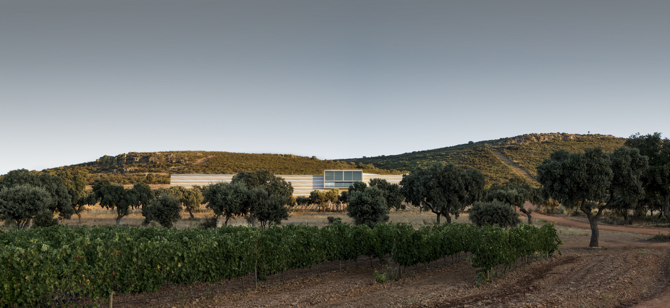 La bodega se sitúa en la cima de una suave colina que domina el paisaje y el viñedo que está al sur. Semienterrada, esta condición de fachada trasera polariza el proyecto y diferencia de forma clara la cara norte de la sur, permitiendo que los espacios que lo necesitan se abran hacia las vistas del sur en la fachada más simbólica, mientras que las instalaciones de la industria se protegen situadas en la parte norte del edificio. De esta forma, el proyecto, siendo un edificio industrial, consigue integrarse armónicamente con los elementos circundantes solo a la bodega.