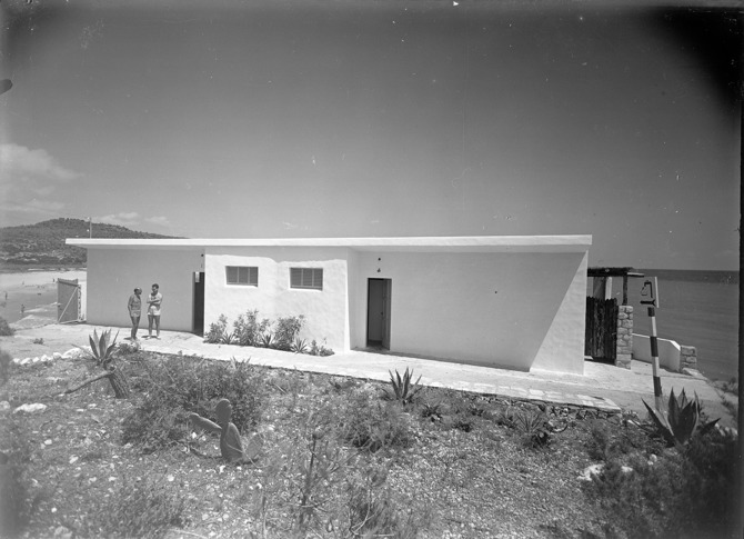 La implantación de las parcelas se realizó mediante la adaptación de la roca con plataformas y muros de piedra del mismo lugar, manteniendo inalterada la imagen desde el mar, con cuatro franjas de colores muy definidos: agua, piedra, pinos y cielo.