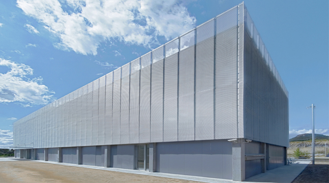 A la hora de escoger los cierres se ha tenido especial cuidado en la protección solar de las superficies acristaladas para prevenir el sobrecalentamiento del edificio por efecto invernadero y los deslumbramientos que dificultan el trabajo con ordenadores. Es por ello que se ha escogido el filtro de una malla desplegada de aluminio.