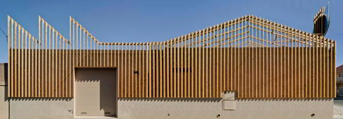 La propuesta asume esa narrativa y la traduce en un gesto claro: el uso continuo de la madera como material. Esta decisión define el espacio en su totalidad: fachadas, techos, suelos y mobiliario. Las lamas de madera acompañan el recorrido interior y exterior, unificándolo todo bajo una atmósfera cálida, amigable y decididamente doméstica. La intervención conserva la escala original del almacén, pero la transforma radicalmente desde dentro, desplegando una nueva identidad sin borrar su origen.