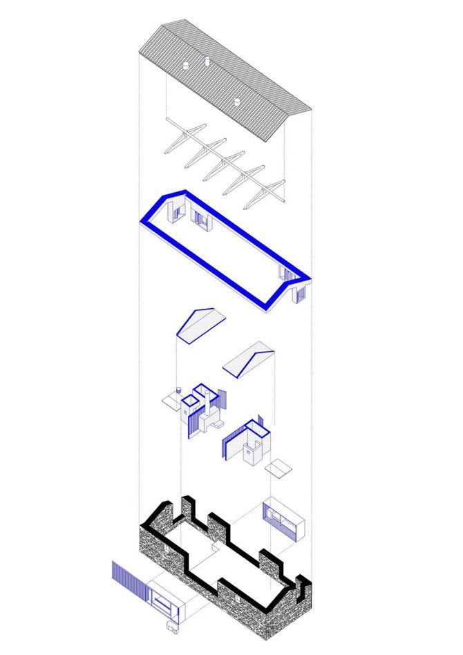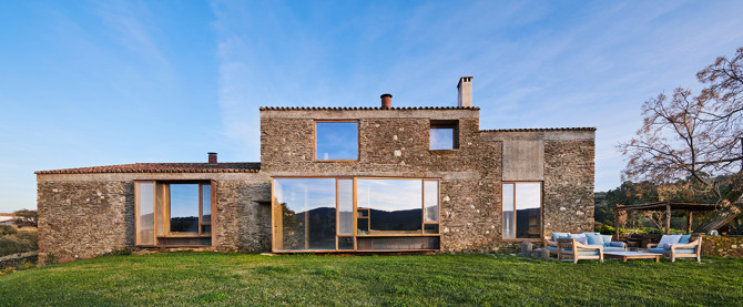 El resultado recuerda a un pueblo rural al mezclar armoniosamente los muros preexistentes y ofrecer el acceso a través de un patio orientado a sur, que sirve como culminación de una secuencia de espacios al aire libre enclavados entre robles y afloramientos rocosos.