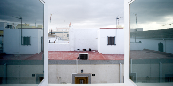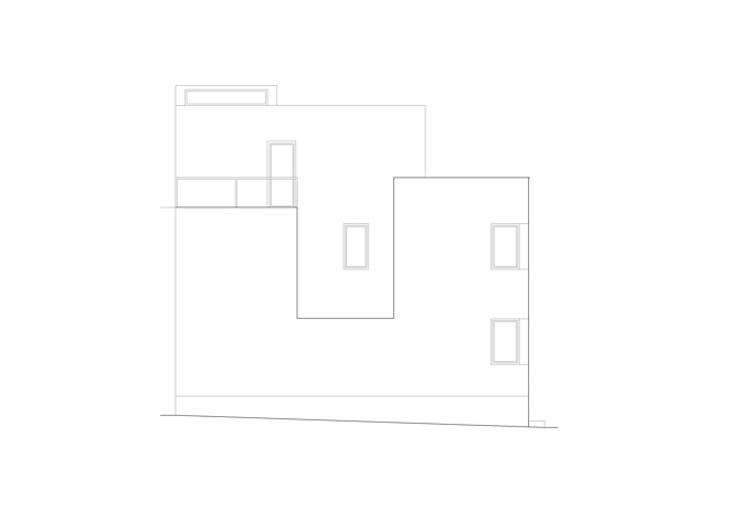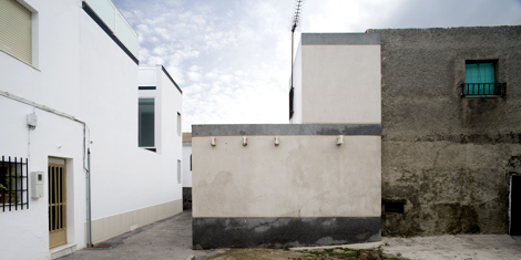 A nivel urbano, el edificio se sitúa en una esquina de dos calles muy estrechas, por lo que se evita una relación directa con ellas, cerrando la vivienda en las plantas baja y primera hacia un espacio abierto interior, controlado y térmicamente beneficioso. Contrariamente, el ático se abre ampliamente hacia la terraza sobre la calle, que permite visuales más allá, hacia el mar, por encima de la iglesia.