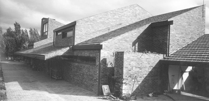 Se compone la vivienda hacia dentro, vuelta sobre sus espacios interiores propios. Según la ordenanza particular de Puerta de Hierro el cerramiento de la parcela debe ser con zócalo madzo y seto verde. Dada la situación de la parcela (vecina a las arterias de circulación principales de la zona) y el caso particular del cliente (ausencia de ruidos) se intenta dar solución al problema compaginando y siguiendo el espíritu de las ordenanzas. Un zócalo de fábrica, una zona ajardinada y detrás un cerramiento macizo que no llame la atención exterior. El cuerpo principal se separa de las calles; tiene su acceso rodado por el norte y se abre al sur sobre tres patios sucesivos: patio principal mayor, patio medio con piscina y patio de dormitorios.