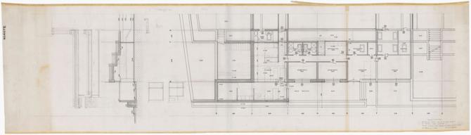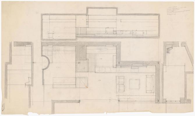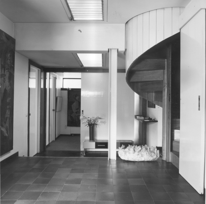 El servicio se coloca paralelo a este cuerpo y separando y aislando el conjunto de la calle; su cubierta escalonada se cubre de flores y sobre este escalón vegetal mira la casa. La planta es bastante elástica y se ha tenido en cuenta que los hijos crecen y la vida cambia, lo cual da origen de una serie de combinaciones y previsiones difíciles de explicar.