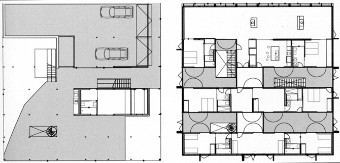 La cubierta ecológica y transitable es la fachada más vista de la casa. El programa de la vivienda se desarrolla en planta primera, con una planta baja de garaje, instalaciones, almacén, porche y jardín de sotavento.