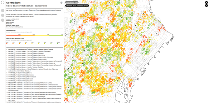En primer lugar, se identifican los elementos que componen las centralidades de proximidad a partir de una consultoría que évalua el corpus de datos públicos existentes (y aquellos que en un futuro se pueden incluir) y, con ellos, construye un modelo digital de la ciudad. Sobre éste, se definen entornos de proximidad desde cada vivienda a los distintos equipamientos y se caracterizan en función de la capacidad y nivel de servicio (población abastecida). Este sistema permite, además, construir clústers (grupos resultantes de la combinación de varias variables de centralidad) en función de diferentes criterios (perfil poblacional, frecuencia de uso) con el objetivo final de valorar su estado y detectar posibles déficits. Todos los indicadores de proximidad generados son accesibles mediante una herramienta digital.