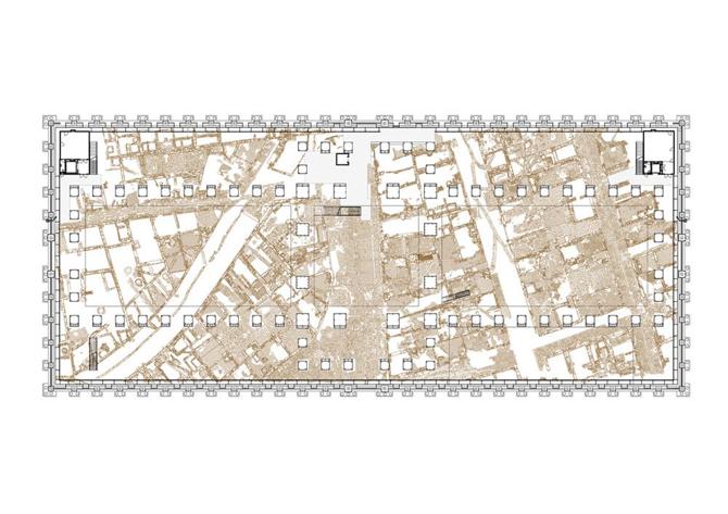 Con este fin, vimos la coexistencia del mercado y la excavación arqueológica como la suma de diferentes momentos, y nuestra primera prioridad fue volver a poner en funcionamiento este complejo sitio, manteniendo la coherencia con su historia y estructura. Así, el interior del antiguo mercado se conserva como una plaza cubierta, un espacio protegido por el que puede pasar el público. El nuevo programa de actividades se configura como un foro cultural del siglo XIX.