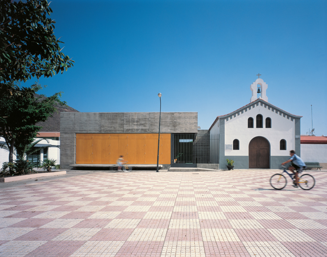 Una pequeña parcela de 15 x 15 m, entre dos plazas y anexa a la ermita de San Bernardo , es el peculiar enclave urbano de este centro. El programa se reduce a una sala polivalente (salón de actos) y tres talleres flexibles para albergar aulas, salas de reuniones y biblioteca.