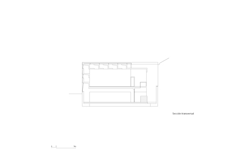 El espacio polivalente se concibe como un lugar de encuentro, prolongación de la plaza de San Bernardo. Está cubierto por un sistema alterno de piezas de hormigón en 'Z' que tiene continuidad en la fachada oeste. Su troquelado discontinuo conforma un umbráculo atravesado por la luz que nos muestra su materialidad anamórfica en la superficie del suelo.