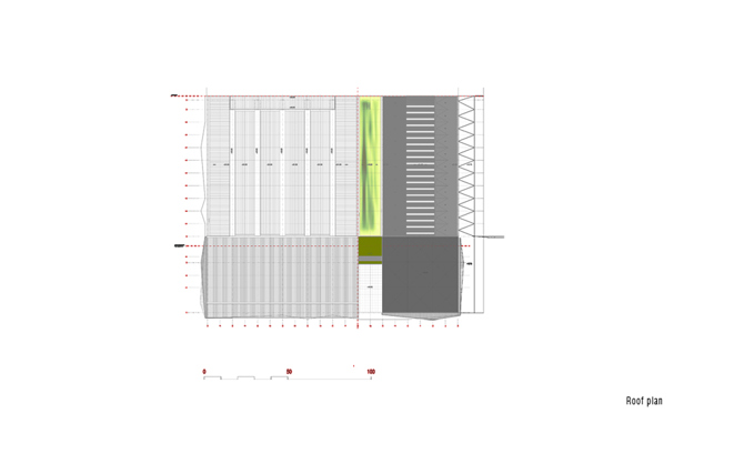 El proyecto es un gran espacio homogéneo clasificado, estructurado a través de unas fisuras horizontales y verticales. Si imaginamos el espacio como lleno, aparecerían unas vetas de otra densidad que cuartearían la masa, y que son de dos tipos: verticales (pozos) y horizontales (galerías). Las dificultades de control de la forma de fachada con estas geometrías eran grandes, y las imágenes digitales eran muy poco realistas.