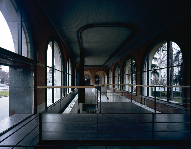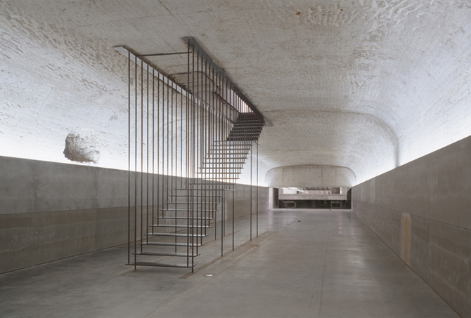 El proyecto está elaborado en dos espacios continuos y diferentes. En un primer espacio, aula de arquitectura, la línea de tierra se establece a modo de eje de simetría en la sección, dejando la mitad rasante y el resto sobre la línea del terreno. Un segundo espacio se ubica en el sótano, bajo la sala de exposiciones.