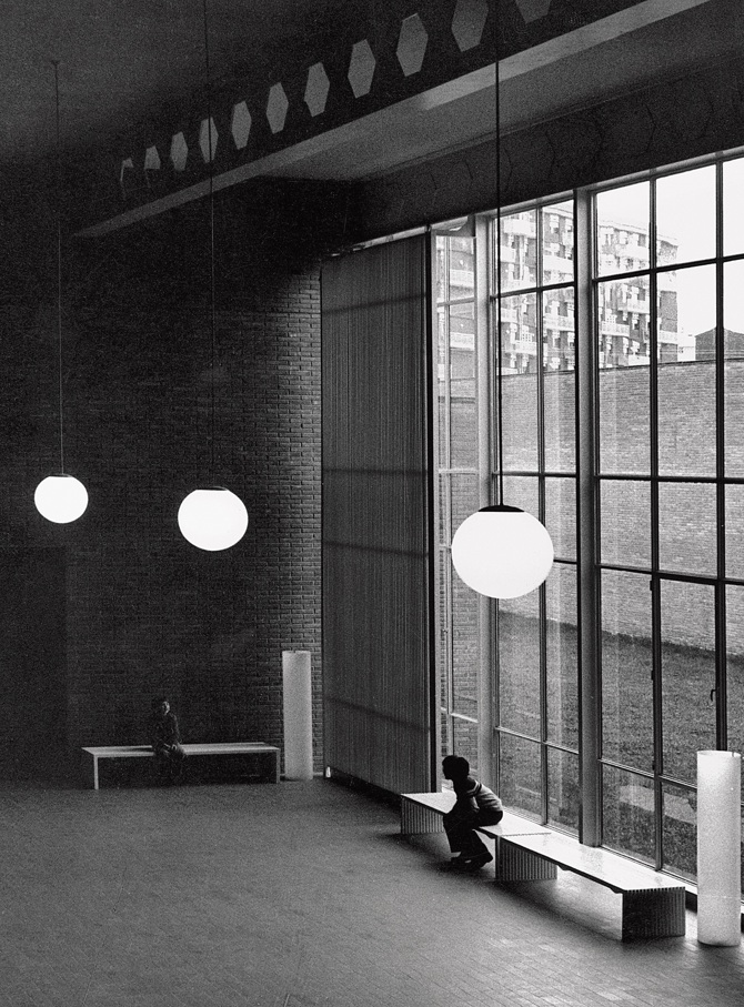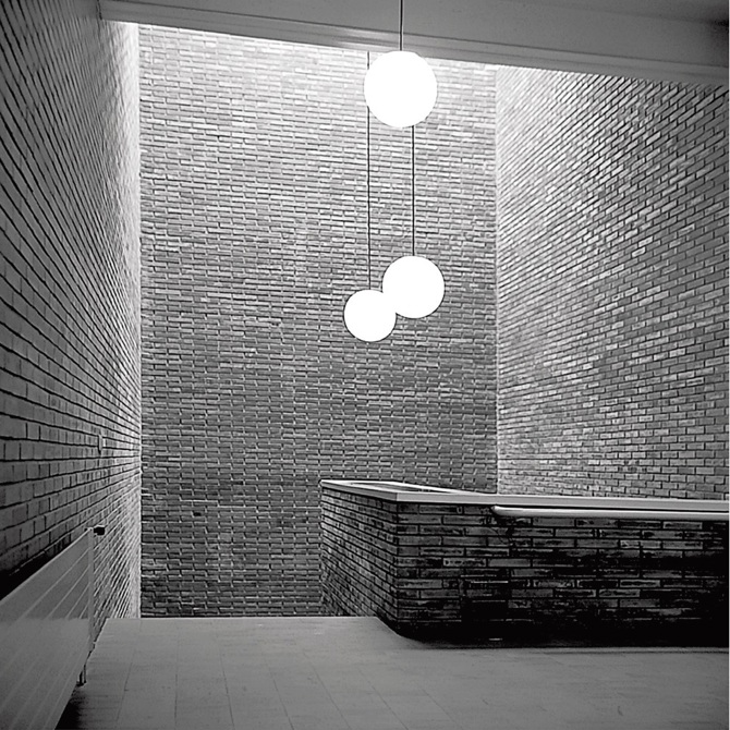 Otra característica común es la unidad del material, principio que procuro seguir siempre a rajatabla, con empleo masivo del ladrillo en exteriores e interiores (vestíbulos, galerías, escaleras, talleres, etc.), la utilización de baldosas de klinker, material también cerámico, como pavimento, y el dejar generalmente vista la estructura metálica. La carpintería y albardilla de remate de los muros son de chapa plegada.