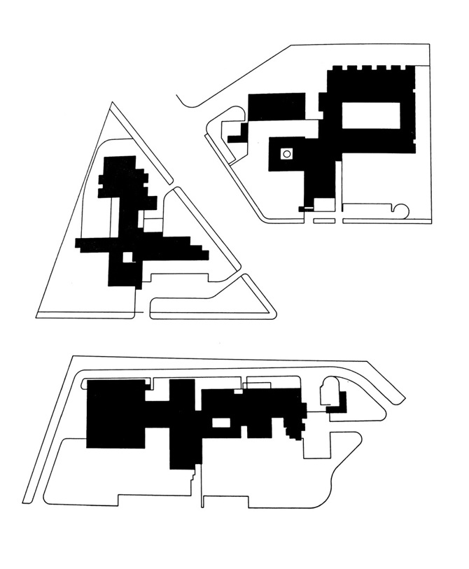 Estos tres edificios –Vitoria, Salamanca y Pamplona– se proyectaron en un tiempo muy breve, acuciados por la necesidad de ponerlos rápidamente en servicio, y se construyeron entre 1972 y 1974, colaborando en ellos Alberto Campo Baeza. Debido a la forma de los solares, son diferentes en organización y morfología, aun cuando en todos ellos se ha seguido un mismo criterio de agrupación y zonificación de los distintos elementos del programa. También los tres siguen los principios estéticos y constructivos del racionalismo en ladrillo. Además, tienen en común el propósito de hacer una arquitectura que refleje su carácter a la vez docente e industrial, sobria y resistente, capaz de soportar, sin degradarse, un uso duro e intenso.