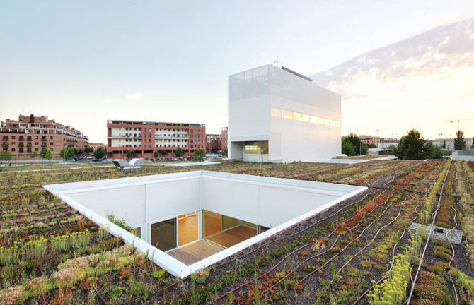 El proyecto, su esquema espacial, sistemas constructivos, instalaciones, ventilación, protecciones exteriores y paisajismo han sido estudiados a la vez para crear un determinado efecto atmosférico y materializar un edificio sin emisiones de gases nocivos, basándose en una tipología de espacios concatenados y patios alternados bien conocida en la tradición constructiva de la meseta castellana, así como en el uso de las cubiertas ajardinadas y de la geotermia como fuente energética principal.