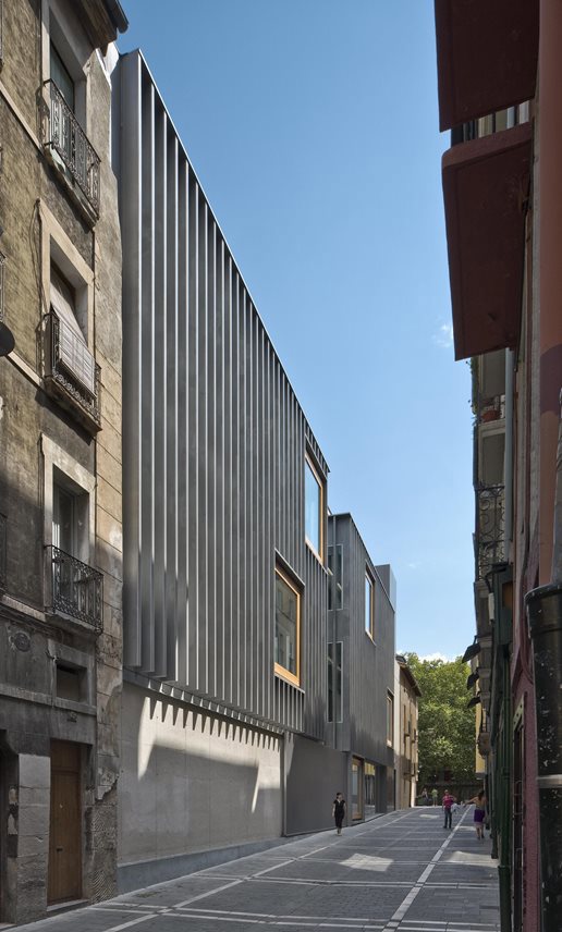 El edificio acoge unas instalaciones deportivas y de salud, situadas en el casco antiguo, y es resultado del Primer Premio del concurso de ideas convocado al efecto. El solar había sido vaciado con ocasión del derribo de un antiguo frontón.