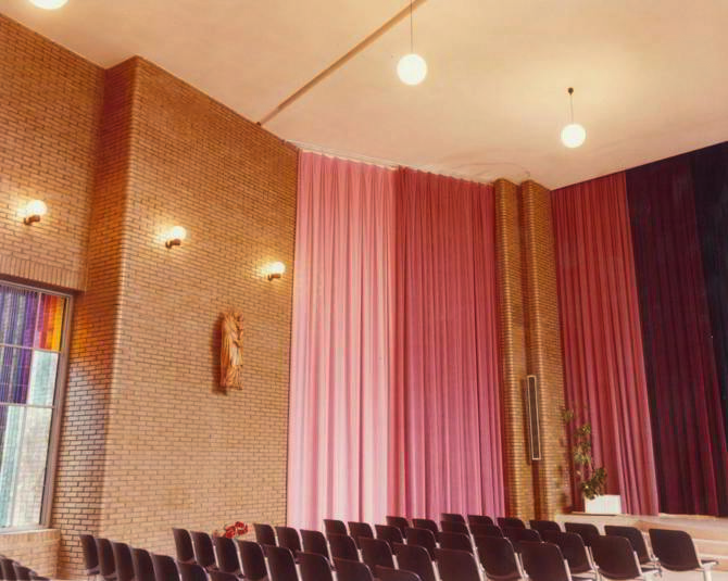 El complejo es una construcción lineal en el eje Este-Oeste, en el que destaca una gran fachada. En el volumen lineal se sitúan los programas docentes mientras que la iglesia y la se alojan en otro volumen en forma de L.