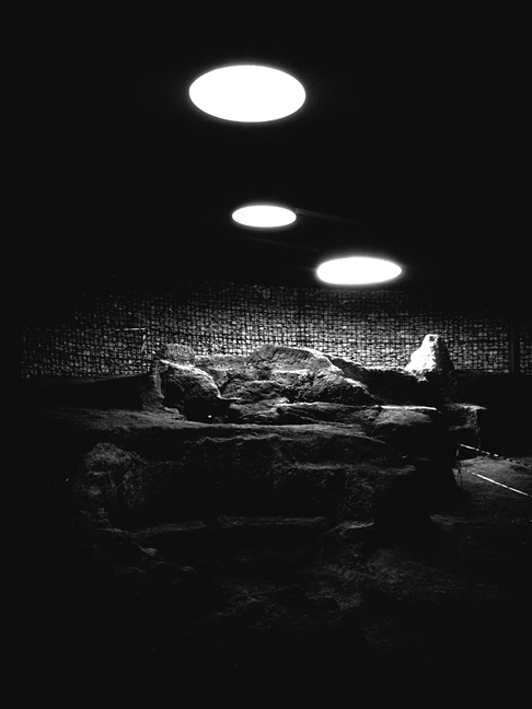 El proyecto pretende dar respuesta a estas variables, manteniendo los restos bajo tierra, tal y como han estado durante siglos, pero provocando que su interpretación hoy día se produzca acorde a un uso adecuado de la luz natural, lo que se consigue mediante una cubierta agujereada, que pasa a ser la cara visible del yacimiento desde el parque. El mismo criterio se establece en la zona inferior (-9 m). Aquí, la otra fachada del edificio muestra un corte en el terreno, un estrato geológico a través del cual accedemos a un nuevo lugar donde se intentan mantener las mínimas referencias espaciales y temporales para poder contemplar los restos en su esencia, entrando casi a ciegas, potenciando los otros sentidos: los olores, la temperatura, el silencio...