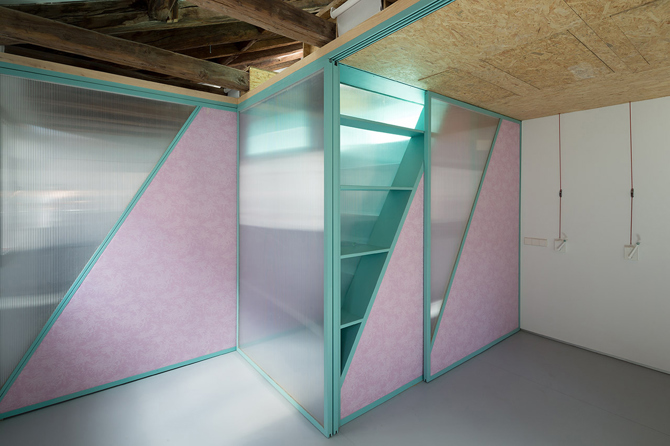 Primero, los paneles móviles, integrados en el núcleo y que deslizan por unas guías. Gracias a los paneles se pueden desplegar diferentes distribuciones, como sacar una habitación extra para un invitado, separar la zona de cocina de la de estar o dejar la planta abierta para celebrar una fiesta. Además, los paneles cuentan con unas partes transparentes que introducen la luz natural que entra a través de la mansarda.