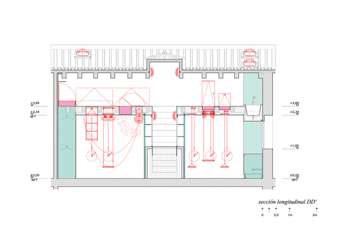 La obra comprende desde el planteamiento de una propuesta funcional adaptada a una usuaria que comienza una vida nueva, hasta la rehabilitación de la estructura, el aislamiento, las instalaciones y la actualización de los sistemas constructivos preexistentes. La estrategia adoptada libera la planta con el objetivo de conseguir la mayor flexibilidad posible. Para ello, se disponen dos elementos fundamentales: