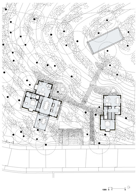Presenciamos una intervención mínima en una topografía natural que busca integrarse y mimetizarse con la vegetación existente, apostando por la conservación de la misma y manteniendo la impresión de que el lugar no ha cambiado con la intervención.