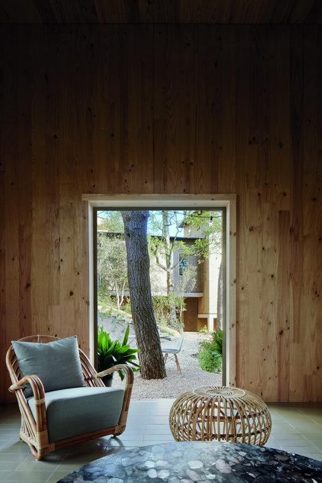 Los espacios fluyen en el interior de la obra arquitectónica, que dialoga con el alejado mar o con las copas de los árboles que la rodean.
