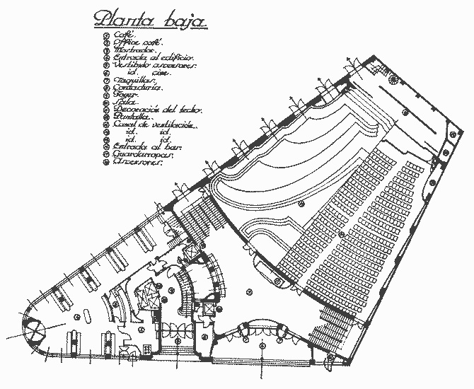 Estructura de acero en hotel y de hormigón en cine, con vigas vierendeel de hormigón y de acero en fachada