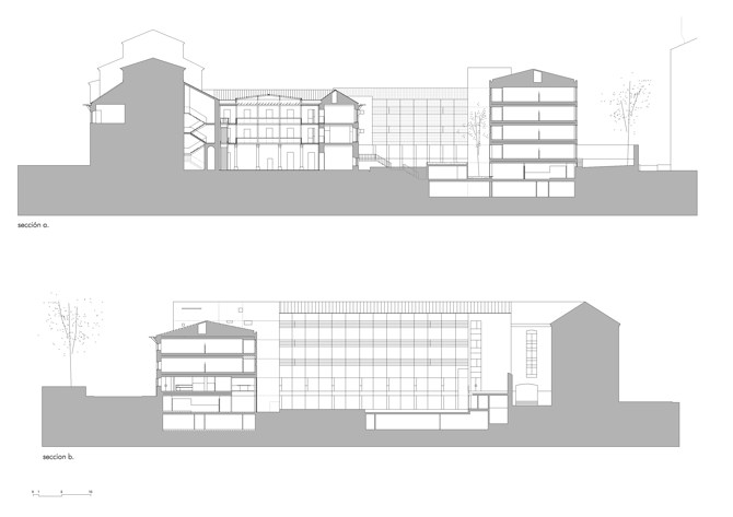 Al complejo programa se une la no menos compleja situación urbanística y la coherencia de los diferentes elementos. La iglesia del convento se independiza, para continuar su uso eclesiástico; el claustro del convento se cubre, generando un espacio bioclimático de estancia y circulación; se adaptan los espacios híbridos y se construye un nuevo volumen en “L” que configura un patio en el interior de la manzana.