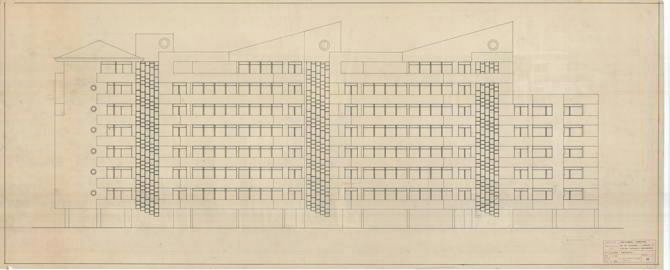 En su cubierta, varios volúmenes rompen la coronación del edificio.