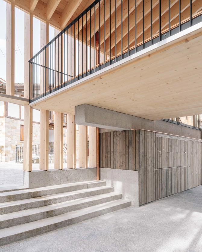 En cuanto a la imagen de la edificación esta ofrece una imagen contemporánea pero a su vez respetuosa con la tradición arquitectónica local tanto en su forma y volumetría concordante con la edificación existente anteriormente, como en sus materiales de construcción y acabado. Los materiales escogidos, madera y piedra, y hormigón tratado de aspecto pétreo, contribuyen a la correcta integración en su entorno.