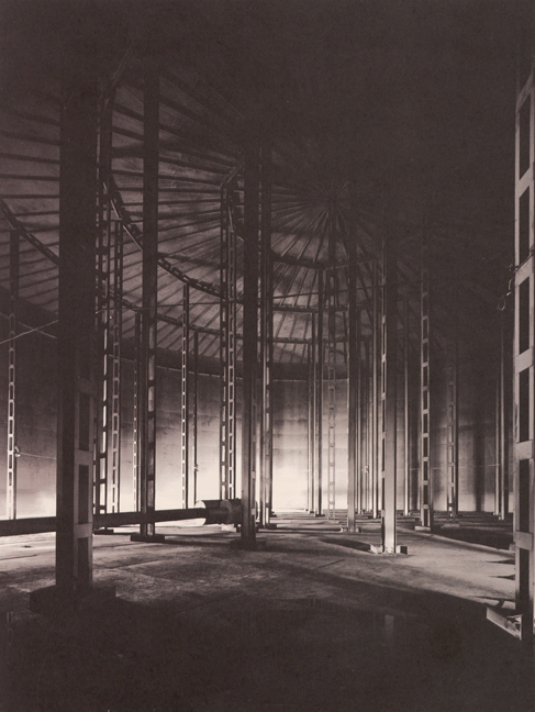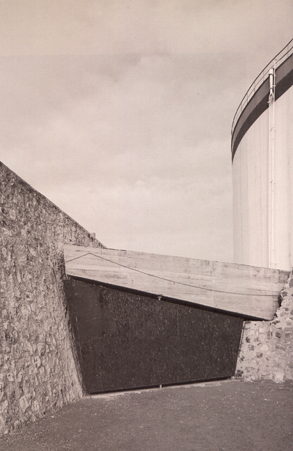 Las posibilidades físicas y funcionales de estos grandes volúmenes minimalistas han hecho posible la incorporación de uno de ellos a la ciudad como hito de espacio cultural y sala de exposiciones. El proyecto de reutilización se ha basado en conservar el aspecto más sencillo del depósito, con ello se pretende mostrar la ejemplaridad de una pieza singular de carácter industrial. Los planos del proyecto se remiten a resolver de una forma elemental la necesidad de acceso, con una calidad constructiva propia de una obra de carácter temporal. Entendiendo la actuación sobre el volumen como un complemento para el carácter monumental del conjunto sin perturbar sustancialmente su imagen básica.